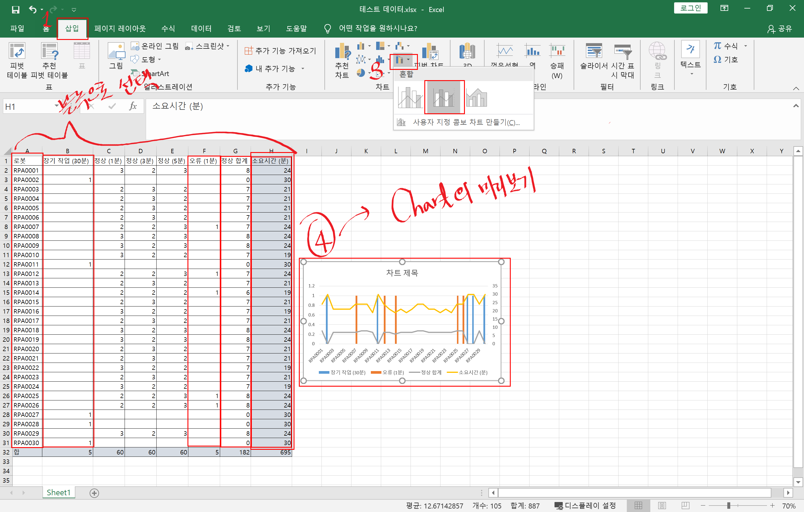 그러면 본격적으로 차트만들기에 대해서만 먼저 설명드리겠습니다.