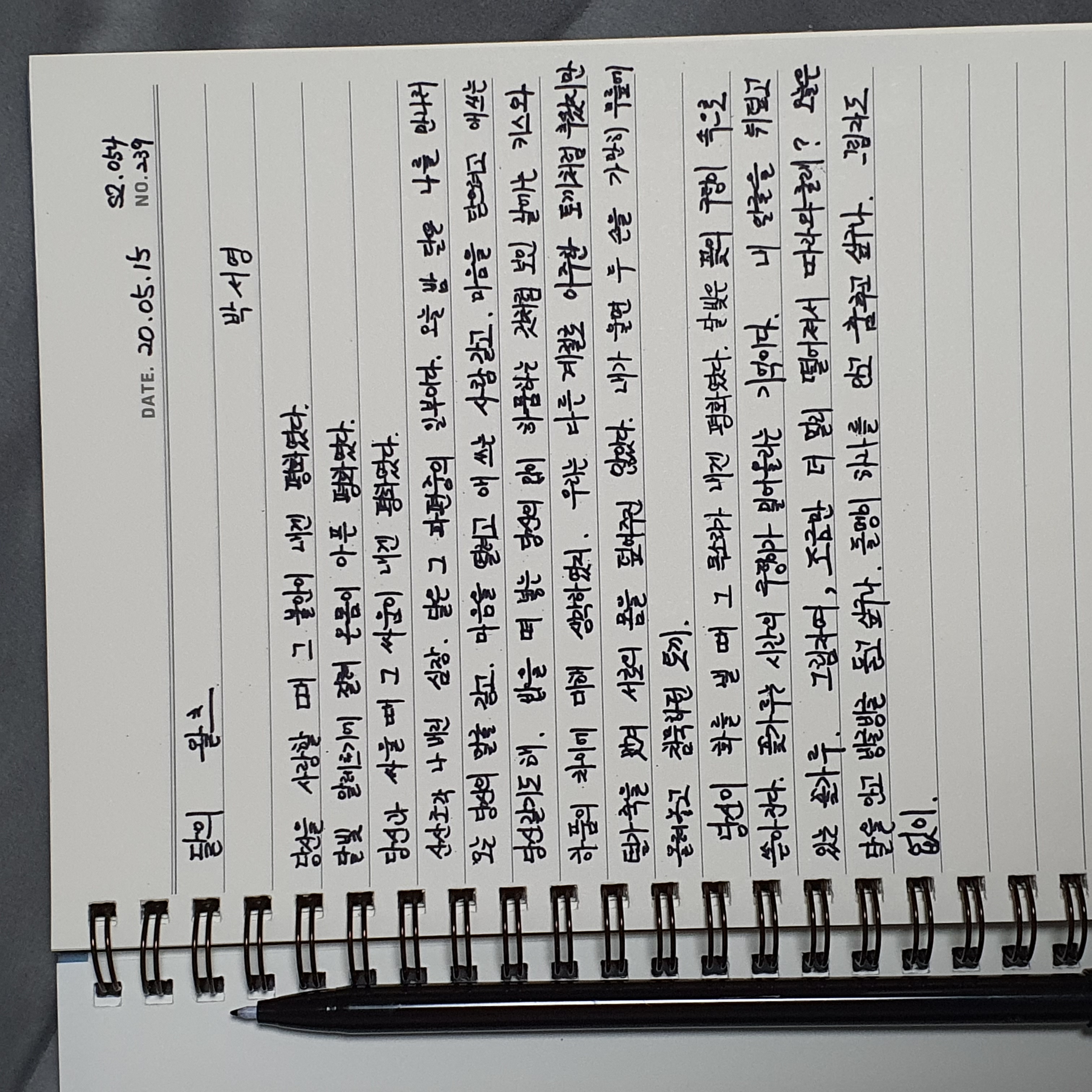 시를 239편째 쓰고 있고, 3번째 필사용 연습장의 첫 장을 쓸 수 있었습니다.
