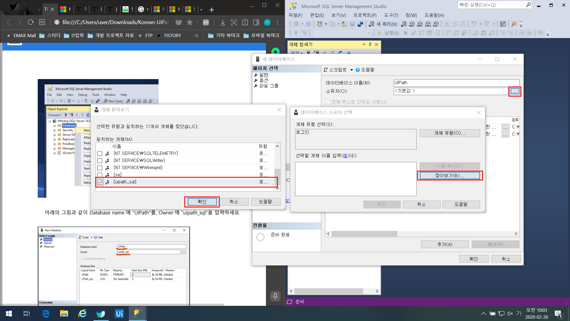 이제는 UiPath Orchestrator 설치를 위해서 SSMS에서 해야 하는 작업 몇 가지를 간단하게 정리하겠습니다.