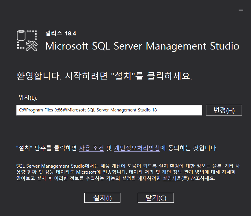 그럼 SSMS가 뭔지 큰 개념은 잡은 듯 하고, SSMS의 설치 과정을 간단히 보고, UiPath Orchestrator를 설치하기 위한 간단한 사전작업을 진행해보겠습니다. SSMS는 다른 응용프로그램들처럼 크게 설치를 하며 설정해 줄 것이 없이 다음으로 넘겨가며 간단히 설치가 가능합니다.
