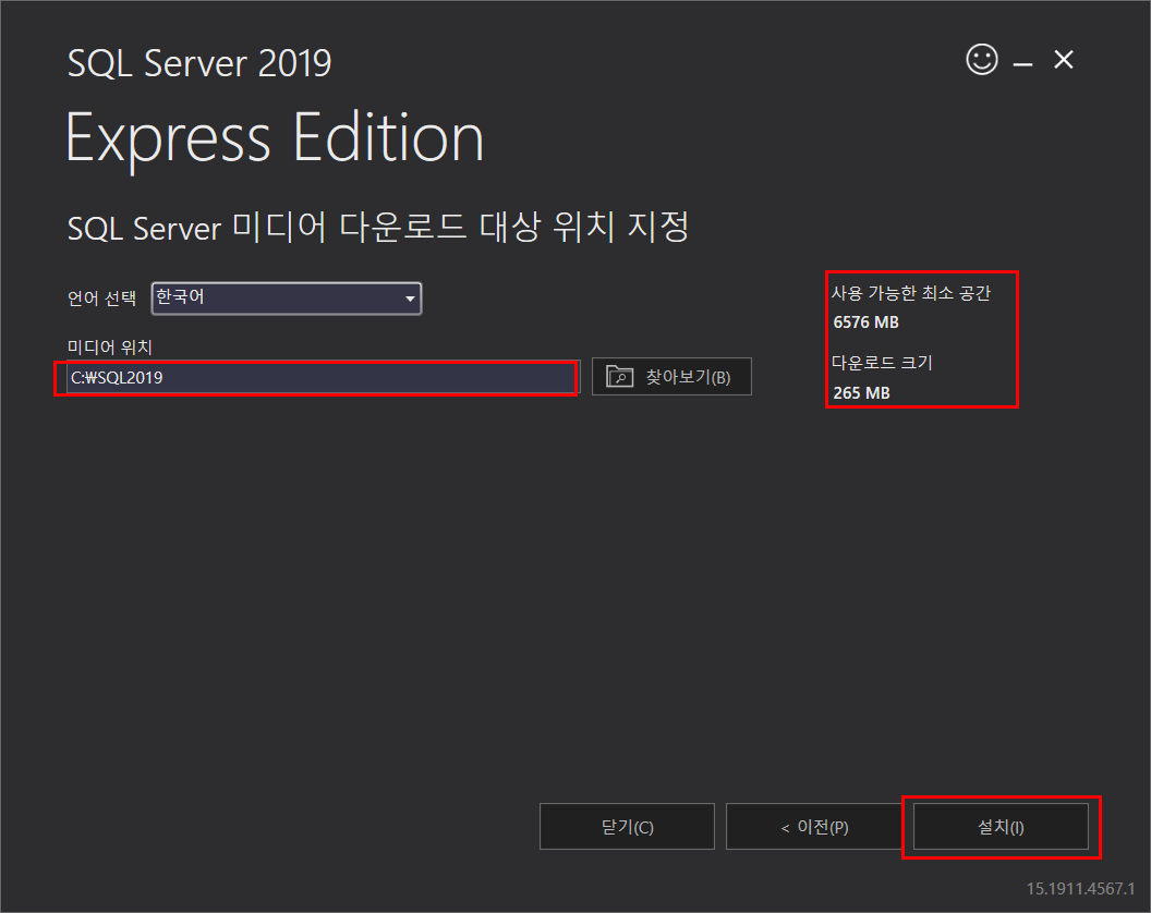 이상으로 SQL Server 2019 Express Edition 설치하기를 마칩니다.